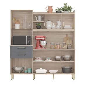 Características: Estrutura em MDP Acabamento em Pintura UV 06 Portas com dobradiças metálicas 02 Gavetas com corrediças metálicas Pistão à Gás Puxadores em Plástico ABS Pés com Regulagem de Altura.