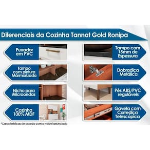 Kit de Cozinha Compacta Tannat Gold c/ 6 Portas e 1 Gaveta Castanho/Branco - Ronipa