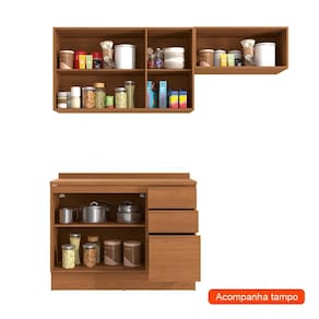 Que tal a Cozinha Valence?Com a Cozinha Valence, você tem tudo o que precisa em um único móvel para manter utensílios, louças e mantimentos sempre organizados e ao seu alcance. Os nichos espaçosos acomodam itens maiores, enquanto as gavetas são ideais para guardar talheres, panos de prato e pequenos acessórios do dia a dia. Além disso, o tampo oferece um suporte extra, perfeito para auxiliar no preparo das refeições ou até mesmo para apoiar itens decorativos. Tudo isso sem comprometer a harmonia do ambiente, já que tem um design charmoso e cor moderna que caem bem com os outros móveis e acessórios que já compõem o cantinho. Marca: Modern