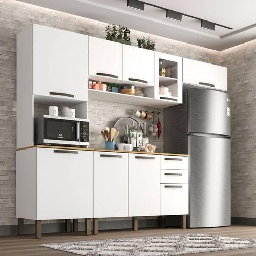 Cozinha Compacta Valencia Com Vidro 4 Peças 9 Portas 2 Gavetas Salleto Moveis Branco Cozinha Compacta Valencia com Vidro 4 Pecas 9 Portas 2 Gavetas Salleto Moveis Voce nunca imaginou que sua Cozinha pudesse ficar tao organizada. Com este Armario de Cozinha Combo Valencia 06 o espaco fica ainda mais convidativo e sempre pronto para te ajudar a preparar pratos incriveis. Confeccionado com materiais de resistencia e qualidade, ele e a melhor opcao para completar seu lar.