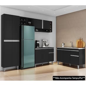 Se você está procurando uma cozinha nova e completa, que tal conhecer a Cozinha Compacta Vanessa e Balcão Gabinete Sem Tampo Tatiane 120cm Preto, da AJL Móveis?