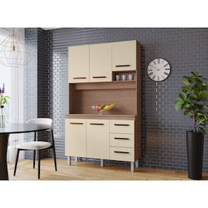 Cozinha Compacta Vitória 120m 5 Portas 3 Gavetas - Savana/Off White Móblis - Savana | Off White