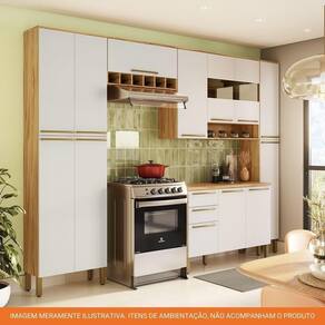 ARMÁRIO AÉREO DE COZINHA COM 1 PORTA E MINI ADEGA 100% MDF NAPOLI PRIME RIO DOCE AMENDOA/OFFWHITE