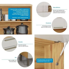 PANELEIRO DUPLO PARA COZINHA COM 4 PORTAS 100% MDF NAPOLI PRIME RIO DOCE AMENDOA/OFFWHITE