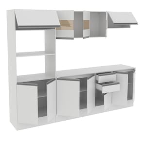 É praticamente uma cozinha planejada, pois seus módulos são separados, podendo ser montados conforme a disposição desejada. Internamente é uma cozinha bem dividida e muito espaçosa. Oferece excelente distribuição interna do espaço para que você organize toda a sua louça e armazene alimentos.