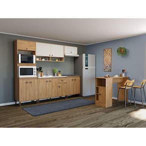 Cozinha Completa 11 Portas 1 Gaveta com Bancada Mb 9004 Torino Mel/Off White - Marrom