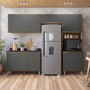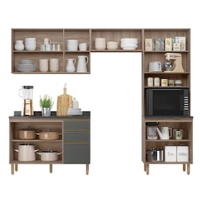 Cozinha Completa 11 Portas 4 Gavetas 100% Mdf Angelita Carvalho Tok / Cinza