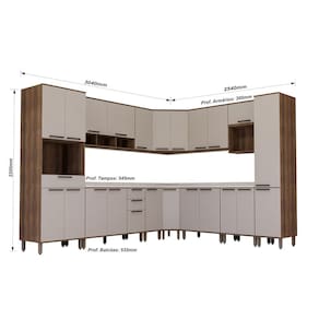 A cozinha Luna possui um design moderno e funcional, o acabamento da sua estrutura em madeira confere um toque de aconchego. Os módulos são montados individualmente e permite a instalação da forma que melhor se adeque ao seu espaço.