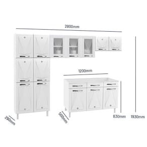 Medida de cada item (A x L x P): paneleiro: 193cm x 80cm x 29cm; armário triplo: 55cm x 120 cm x 29cm; armário duplo:37,5cm x 80cm x 29cm; Balcão: 91cm x 120cm x 50cm
