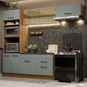 Todos os armários e balcões são avulsos, o que permite que você organize as peças conforme a necessidade do seu espaço. Com isso, se torna praticamente uma cozinha planejada para o seu ambiente.