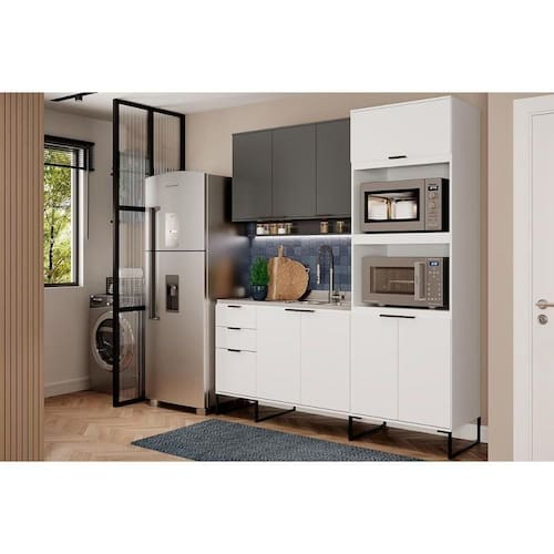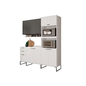 Cozinha Completa Alpha 3 Peças (1Aéreo+1Balcão+1TorreQuente) C3P74 Branco/Cinza Titanio - Carraro