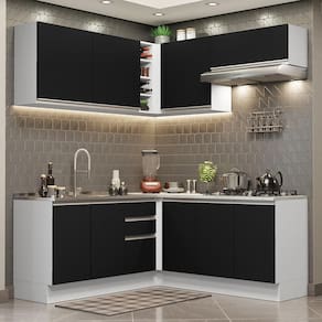Totalmente modulada, permite organizar os armários e balcões conforme preferir no seu ambiente. Além disso, o canto pode ser montado tanto para o lado esquerdo quanto para o direito.