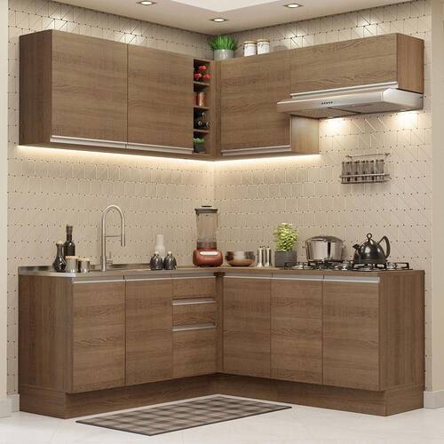 Esta Cozinha Completa de Canto da linha Glamy oferece conforto e modernidade à sua casa, bem como a qualidade de fabricação dos produtos Madesa.