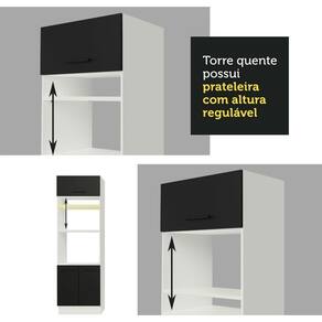 O acabamento da estrutura é branco e as portas e frentes são pretas. É feito em Pintura Poliéster ecológica com sete camadas, que destaca a tonalidade e protege o móvel.