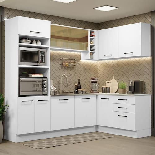 Esta Cozinha de Canto da linha Agata da Madesa é pensada especialmente para ambientes grandes e com muito espaço disponível.