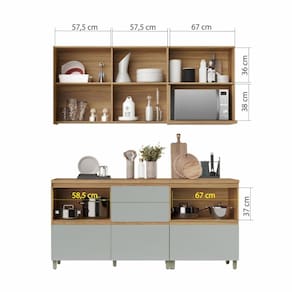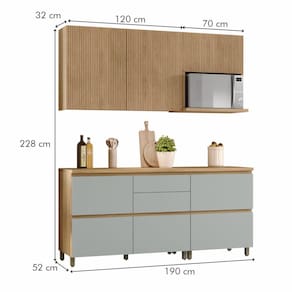 A linha de cozinha Nesher Rainha 100% MDF e com certificação FSC(R), tem design contemporâneo, robusto e é muito pratica. Inspirada em cozinhas planejadas, está disponível em módulos, permitindo composições variadas, projetos exclusivos, conforme o espaço e o gosto do consumidor. Os armários aéreos foram projetados com porta canelada, tendencia de Milão - Itália, que propõe sofisticação, aconchego, grande beleza e harmonia ao conjunto. Acabamento da Prateleira: Impressão Escala de Brilho da Prateleira: Semi-Brilho Acabamento da Gaveta: Impressão Escala de Brilho da Gaveta: Semi-Brilho Material do Puxador da Gaveta: Alumínio Acabamento da Porta: Impressão Escala de Brilho da Porta: Semi-Brilho Material do Puxador da Porta: Alumínio Acabamento dos Pés: Pintura Acompanha Tampo: Sim Altura dos Pés: 10 cm Ambiente Principal: Cozinha codigo_ean: 7909903312100 Complexidade da Montagem: Alta: deve ser montado por um montador especializado Cor: Marrom/Verde Cor do Produto: Marrom/Verde Escala de Brilho: Semi-Brilho Gaveta com Chave: Não Itens Inclusos: 4 Módulos, Kit Ferragens e Manual de Montagem Linha ou Coleção: Rainha Manual de Montagem e Instalação: https://product-hub-prd.madeiramadeira.com.br/848780/documents/f576f9ae-0fb8-4283-b010-44df7152db53ontagemcozinha4peCasrainha.pdf Material da Dobradiça/Corrediça da Porta: Metálica Material da Gaveta: MDF Material da Porta: MDF Material da Prateleira: MDF Material do Tampo: MDF Material dos Pés: Plástico Medida de cada item (A x L x P): Armário Aéreo 2 Portas: 80cmx120cmx32cmArmario Aéreo 1 Porta Báscula: 80cmx80cmx32cm, Balcão 1 Porta Báscula 4 Gavetas: 91cmx120cmx52cm, Balcão 1 porta basculante 1 gaveta: 91cmx80cmx52cm Necessita Montagem: Sim O Balcão Acompanha Pia: Não Origem do Produto: Nacional Pés Reguláveis: Sim Peso: 145,5 kg Peso Máximo por Gaveta: 5 kg Peso Máximo por Prateleira: 10 kg Possui Pés: 09 Possui Portas: Sim Possui Prateleiras: Sim Possui recorte para Cooktop: Não Possui Rodízio: Não Produto Montado: Sim Recomendações de Uso, Manutenção e Limpeza: Utilizar pano macio levemente umedecido e na sequencia pano macio seco. Sapatas Niveladoras: Sim Sistema de Montagem: Parafusos e cavilhas Tipo de Corrediça da Gaveta: Metálica Telescópica Tipo de Dobradiça da Porta: 35 mm Tipo de Puxador da Gaveta: Externo Tipo de Puxador da Porta: Externo