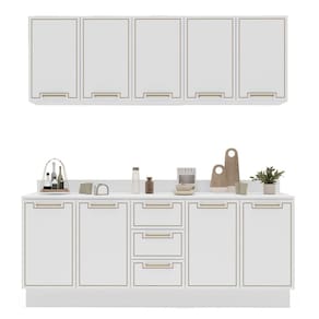 Modular : Sim Peso (kg) : 110.92 Garantia : 06 Meses Altura (cm) : 224.5 Acabamento : Pintura UV Largura (cm) : 200 Possui Pés : Rodapé Possui Vidro : Não Possui Portas : Sim Tipo de Porta : Misto (Bater e Basculante) Altura dos Pés : 15 Pés Reguláveis : Sim Possui Gavetas : Sim Possui Rodízio : Não Suporta Até (kg) : 30 Acompanha Tampo : Sim Profundidade (cm) : 52 Escala de Brilho : Semi-Fosco Gaveta com Chave : Não Material dos Pés : Plástico Serviço Montagem : 114259443 Material da Porta : MDF/MDP Material do Tampo : MDF/MDP Origem do Produto : Nacional Acabamento dos Pés : Pintura Ambiente Principal : Cozinha Balcão Suporta Pia : Sim Material da Gaveta : MDF/MDP Material Principal : MDF/MDP Possui Prateleiras : Sim Acabamento da Porta : Finish Foil Quantidade de Peças : 4 Sapatas Niveladoras : Sim Acabamento da Gaveta : Finish Foil Balcão Acompanha Pia : Não Material da Prateleira : MDF/MDP Peso Máximo por Gaveta : 5 Acabamento da Prateleira : Finish Foil Tipo de Puxador da Porta : Externo Escala de Brilho da Porta : Semi-Fosco Tipo de Puxador da Gaveta : Externo Escala de Brilho da Gaveta : Semi-Fosco Peso Máximo por Prateleira : 3 Tipo de Armário de Cozinha : Cozinha Compacta Possui Recorte para Cooktop : Não Tipo de Corrediça da Gaveta : Metálica Telescópica Material do Puxador da Porta : Alumínio Material do Puxador da Gaveta : Alumínio Escala de Brilho da Prateleira : Semi-Fosco Medida de Cada Item (A x L x P) (novo) : Balcão: 120x81x50,5; Aéreo 120x60x30,5; Balcão 83x92,5x52; Aéreo 80x66x30,5 Material da Dobradiça/Corrediça da Porta : Alumínio Marca : Politorno Cor Interna : Branco Cor : Branco Cor do Produto : Branco Itens Inclusos : 1 Cozinha Desmontada + Kit de Ferragens + Manual de Montagem + Termo de Garantia Cor Predominante : Branco Linha ou Coleção : Amara Quantidade de Prateleiras : 04 Prateleiras Quantidade de Portas : 4 Portas Quantidade de Gavetas : 03 Gavetas Quantidade do Produto : 4