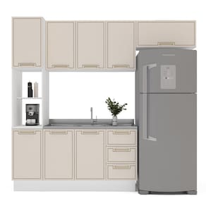 A Cozinha Amara 4 Peças da Politorno Móveis é ideal para quem busca um ambiente organizado e moderno. Conta com um balcão com 3 gavetas e 2 portas, um paneleiro com 2 portas, além de 3 armários aéreos e 1 basculante, oferecendo amplo espaço para armazenamento. Com 224,5 cm de altura, 240 cm de largura e 52 cm de profundidade, otimiza o espaço disponível. A pintura UV garante resistência, e as gavetas com corrediças telescópicas proporcionam deslizamento suave. Observação: vem sem tampo, permitindo personalização. Com materiais de qualidade e ótimo custo-benefício, é uma escolha sofisticada e funcional.