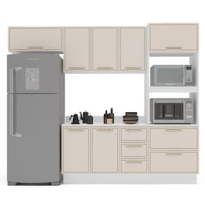 Modular : Não Peso (kg) : 131.64 Garantia : 06 Meses Altura (cm) : 224.5 Acabamento : Pintura UV Largura (cm) : 270 Possui Pés : Rodapé Possui Vidro : Não Possui Portas : Sim Tipo de Porta : Misto (Bater e Basculante) Altura dos Pés : 15 Pés Reguláveis : Sim Possui Gavetas : Sim Possui Rodízio : Não Suporta Até (kg) : 30 Acompanha Tampo : Sim Profundidade (cm) : 52 Escala de Brilho : Semi-Fosco Gaveta com Chave : Não Material dos Pés : Plástico Serviço Montagem : 114259443 Material da Porta : MDF/MDP Material do Tampo : MDF/MDP Origem do Produto : Nacional Acabamento dos Pés : Pintura Ambiente Principal : Cozinha Balcão Suporta Pia : Sim Material da Gaveta : MDF/MDP Material Principal : MDF/MDP Possui Prateleiras : Sim Acabamento da Porta : Finish Foil Quantidade de Peças : 4 Sapatas Niveladoras : Sim Acabamento da Gaveta : Finish Foil Balcão Acompanha Pia : Não Material da Prateleira : MDF/MDP Peso Máximo por Gaveta : 5 Acabamento da Prateleira : Finish Foil Tipo de Puxador da Porta : Externo Escala de Brilho da Porta : Semi-Fosco Tipo de Puxador da Gaveta : Externo Escala de Brilho da Gaveta : Semi-Fosco Peso Máximo por Prateleira : 3 Tipo de Armário de Cozinha : Cozinha Compacta Possui Recorte para Cooktop : Não Tipo de Corrediça da Gaveta : Metálica Telescópica Material do Puxador da Porta : Alumínio Material do Puxador da Gaveta : Alumínio Escala de Brilho da Prateleira : Semi-Fosco Medida de Cada Item (A x L x P) (novo) : Balcão: 92,5x120x52cm; Aéreo 66x120x30,5; Basculante 36x80x30,5; Torre Quente 224,5x70x52 Material da Dobradiça/Corrediça da Porta : Alumínio Marca : Politorno Cor Interna : Branco Cor : Branco/Creme Cor do Produto : Branco/Creme Itens Inclusos : 1 Cozinha, Kit de Ferragens, Manual de Montagem e Termo de Garantia Cor Predominante : Bege Linha ou Coleção : Amara Quantidade de Prateleiras : 03 Prateleiras Quantidade de Portas : 8 Portas Quantidade de Gavetas : 04 Gavetas Quantidade do Produto : 4