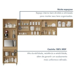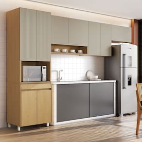 É adequada para decoração de cozinha grande? Sim, é perfeita para quem tem mais espaço e quer aproveitar cada canto da cozinha. Acabamento da Prateleira: Impressão Escala de Brilho da Prateleira: Semi-Brilho Acabamento da Gaveta: Impressão Escala de Brilho da Gaveta: Semi-Brilho Acabamento da Porta: Impressão Escala de Brilho da Porta: Semi-Brilho Acabamento dos Pés: Impressão Acompanha Tampo: Sim Altura dos Pés: 10 cm Altura Máxima dos Pés: 10.0000 Ambiente Principal: Cozinha Balcão Suporta Pia: Não codigo_ean: 7900288102133 Complexidade da Montagem: Alta: deve ser montado por um montador especializado Cor: Carvalho/Greige Cor do Produto: Carvalho/Greige Escala de Brilho: Semi-Brilho Gaveta com Chave: Não Itens Inclusos: 1 Cozinha, 1 Manual de Montagem, 1 Kit Ferragens. Manual de Montagem e Instalação: https://product-hub-prd.madeiramadeira.com.br/983197/documents/0586a866-934d-4193-bb2c-aba2fb0e1de9276932273217431009138182.pdf Marca: Nesher Móveis Material da Corrediça: Metálica Material da Dobradiça/Corrediça da Porta: Metálica Material da Gaveta: MDF Material da Porta: MDF Material da Prateleira: MDF Material do Tampo: MDF Material dos Pés: Plástico Medida de cada item (A x L x P): Paneleiro: 228x70x54,5;aéreo com nicho: 80x120x32; aéreo geladeira: 40x32x80; aéreo 2 portas: 80x80x32; Necessita Montagem: Sim O Balcão Acompanha Pia: Não Origem do Produto: Nacional Pés Reguláveis: Sim Peso: 144,32 kg Peso Máximo por Gaveta: 5 kg Peso Máximo por Prateleira: 10 kg Possui Pés: 04 Possui Portas: Sim Possui Prateleiras: Sim Possui recorte para Cooktop: Não Possui Rodízio: Não Possui Vidro: Não Produto Montado: Sim Recomendações de Uso, Manutenção e Limpeza: Utilizar pano macio levemente umedecido e na sequencia pano macio seco. Sapatas Niveladoras: Sim Sistema de Montagem: Parafusos e Cavilhas Tipo de Corrediça da Gaveta: Metálica Telescópica Tipo de Dobradiça da Porta: 35 mm Tipo de Puxador da Gaveta: Embutido Tipo de Puxador da Porta: Embutido Marca: Não Informado