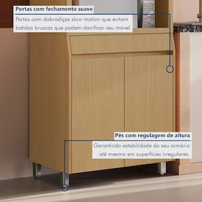 Transforme sua cozinha em um espaço organizado, funcional e cheio de estilo com nossa cozinha completa! O paneleiro é perfeito para armazenar panelas, mantimentos e utensílios, mantendo tudo sempre à mão. Os armários aéreos garantem ainda mais espaço para louças e copos, trazendo praticidade para o dia a dia. E para aproveitar cada cantinho com inteligência, o armário aéreo com porta basculante completa o conjunto, adicionando um toque moderno e sofisticado. Sua cozinha mais organizada e funcional como você sempre quis!