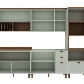 Apresentamos a Cozinha Modulável com 5 Módulos, que inclui torre quente com espaço para forno e micro-ondas, armário aéreo de 120 cm com porta de vidro e passador de pratos, trazendo charme e funcionalidade ao seu ambiente.