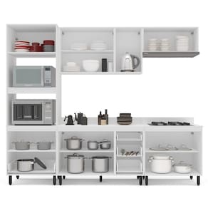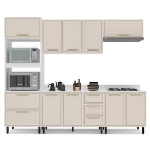 A Cozinha Amara 5 Peças da Politorno Móveis é completa e funcional, ideal para quem busca praticidade e design moderno. Composta por um balcão com 3 gavetas e 4 portas, torre quente com 2 portas basculantes e 1 gaveta, além de 3 armários aéreos e 1 basculante, oferece excelente capacidade de armazenamento. Com 224,5 cm de altura, 270 cm de largura e 52 cm de profundidade, aproveita bem espaços maiores. O acabamento em pintura UV garante durabilidade, e as gavetas com corrediças telescópicas proporcionam deslizamento suave. Observação: vem com tampo, facilitando a instalação. Acabamento da Prateleira: Finish Foil Escala de Brilho da Prateleira: Semi-Fosco Acabamento da Gaveta: Finish Foil Escala de Brilho da Gaveta: Semi-Fosco Material do Puxador da Gaveta: Alumínio Acabamento da Porta: Finish Foil Escala de Brilho da Porta: Semi-Fosco Material do Puxador da Porta: Alumínio Acabamento dos Pés: Pintura Acompanha Tampo: Sim Altura dos Pés: 15 cm Ambiente Principal: Cozinha Balcão Suporta Pia: Sim codigo_ean: 7900288148759 Complexidade da Montagem: Média: pode ser montado por mais de uma pessoa e/ou necessite de maior conhecimento para montagem Cor: Branco/Creme Cor do Produto: Branco/Creme Cor Interna: Branco Escala de Brilho: Semi-Fosco Gaveta com Chave: Não Itens Inclusos: 1 Cozinha, Kit Ferragens e Manual de Montagem Linha ou Coleção: Amara Manual de Montagem e Instalação: https://product-hub-prd.madeiramadeira.com.br/977695/documents/10582c02-d5a9-408d-860d-2c636e0214602896726622417461941231551.pdf Marca: Politorno Material da Dobradiça/Corrediça da Porta: Alumínio Material da Gaveta: MDF/MDP Material da Porta: MDF/MDP Material da Prateleira: MDF/MDP Material do Tampo: MDF/MDP Material dos Pés: Plástico Medida de cada item (A x L x P): Balcão: 92,5x120x52; Aéreo 66x120x30,5; Basculante 36x80x30,5; Torre Quente 224,5x70x52; Balcão 92,5x80x52 modular: Não Necessita Montagem: Sim O Balcão Acompanha Pia: Não Origem do Produto: Nacional Pés Reguláveis: Sim Peso: 134,41 kg Peso Máximo por Gaveta: 5 kg Peso Máximo por Prateleira: 3 kg Possui Pés: 13 Possui Portas: Sim Possui Prateleiras: Sim Possui recorte para Cooktop: Não Possui Rodízio: Não Possui Vidro: Não Produto Montado: Sim Recomendações de Uso, Manutenção e Limpeza: Utilize um pano macio umedecido com água e sabão neutro, seguido de pano seco. Não utilize produtos químicos ou abrasivos para limpeza, pois estes danificam o revestimento do móvel. Sapatas Niveladoras: Sim Sistema de Montagem: Cavilha, Parafuso, Minifix e prego. Acompanha bucha e parafuso para fixação na parede Suporta Até (kg): 30 kg Tipo de Corrediça da Gaveta: Metálica Telescópica Tipo de Dobradiça da Porta: Soft close Tipo de Puxador da Gaveta: Externo Tipo de Puxador da Porta: Externo