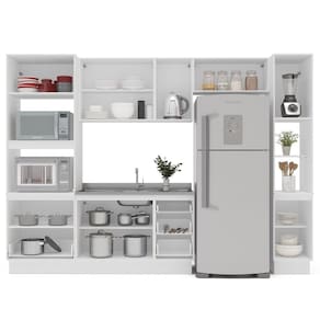 Itens Inclusos: 1 Balcão, 1 Aéreo, 1 Basculante,1 Torre Quente, 1 Paneleiro, Kit Ferragens e Manual de Montagem