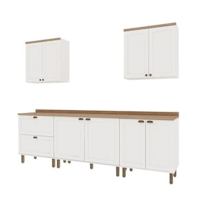 A linha é 100% em MDF, a fabricação é feita com materiais de alto padrão, como corrediças telescópicas e dobradiças com amortecimento. Bordas em PUR, portas em BP com acabamento provençal.