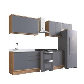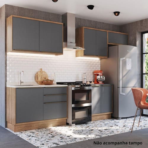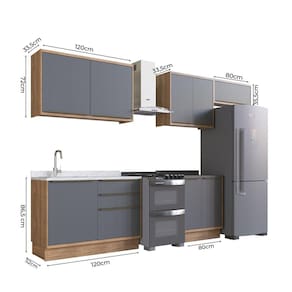 A Cozinha Completa 5 Peças Viena é composta por peças essenciais para sua cozinha. Com estilo moderno e sofisticado, agrega beleza ao ambiente. Todos os puxadores são em alumínio champanhe e as dobradiças possuem amortecimento, de forma que proporcione resistência e funcionalidade ao produto. Além do mais, todas as portas são finalizadas em BP, que permite que os móveis tenham desenhos exclusivos, acabamentos detalhados e texturas especiais. Acabamento da Prateleira: Pintura Escala de Brilho da Prateleira: Semi-Brilho Acabamento da Gaveta: BP Melamínico Escala de Brilho da Gaveta: Semi-Brilho Material do Puxador da Gaveta: Cromado Acabamento da Porta: BP Melamínico Escala de Brilho da Porta: Semi-Brilho Material do Puxador da Porta: Cromado Acabamento dos Pés: Pintura Acompanha Tampo: Não Altura dos Pés: 14,5 cm Altura Máxima dos Pés: 14.5000 Ambiente Principal: Cozinha codigo_ean: 7909903556818 Complexidade da Montagem: Alta: deve ser montado por um montador especializado Cor: Freijó / Grafite Cor do Produto: Freijó / Grafite Cor Interna: Freijó Escala de Brilho: Semi-Brilho Espessura do Material da Estrutura: 15 mm Gaveta com Chave: Não Itens Inclusos: 1 Balcão Inferior 120cm, 1 Balcão Inferior 80cm, 1 Aéreo 80cm, 1 Aéreo 80cm, 1 Aéreo 120cm Linha ou Coleção: Viena Manual de Montagem e Instalação: https://product-hub-prd.madeiramadeira.com.br/883012/documents/fa5ddf8c-cd78-4666-9e0e-9904531f09c61720834ilovepdfmerged.pdf Material da Dobradiça/Corrediça da Porta: Metálica Material da Gaveta: MDF Material da Porta: MDF Material da Prateleira: MDF Material dos Pés: MDF Medida de cada item (A x L x P): Balcão Inferior: L 120cm x A 86,5cm x P 52cm; Balcão Inferior: L 80cm x A 86,5cm x P 52; Aéreo: L 120cm x A 72cm x P 33,5cm; Aéreo: L 80cm x A 72cm x P 33,5; Aéreo: L 80cm x A 35,5cm x P 33,5cm modular: Sim Necessita Montagem: Sim O Balcão Acompanha Pia: Não Origem do Produto: Nacional Pés Reguláveis: Não Peso: 144,85 kg Peso Máximo por Gaveta: 5 kg Peso Máximo por Prateleira: 5 kg Possui Pés: Rodapé Possui Portas: Sim Possui Prateleiras: Sim Possui recorte para Cooktop: Não Possui Rodízio: Não Possui Vidro: Não Produto Montado: Sim Recomendações de Uso, Manutenção e Limpeza: Recomenda-se a utilização de pano seco. Sapatas Niveladoras: Sim Sistema de Montagem: Parafuso e Minifix Tamanho Indicado do Tampo: 120cm, 80cm Tipo de Corrediça da Gaveta: Metálica Telescópica Tipo de Dobradiça da Porta: 35 mm Tipo de Puxador da Gaveta: Externo Tipo de Puxador da Porta: Externo
