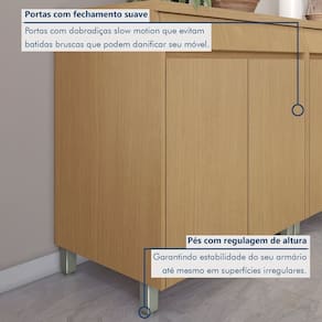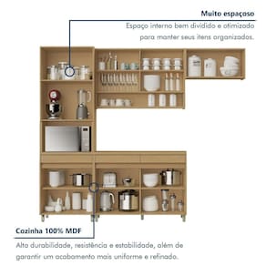 Sim, sua medida é perfeita para quem tem mais espaço e quer aproveitar cada canto da cozinha. Acabamento da Prateleira: Impressão Escala de Brilho da Prateleira: Semi-Brilho Acabamento da Gaveta: Impressão Escala de Brilho da Gaveta: Semi-Brilho Acabamento da Porta: Impressão Escala de Brilho da Porta: Semi-Brilho Acabamento dos Pés: Impressão Acompanha Tampo: Sim Altura dos Pés: 10 cm Altura Máxima dos Pés: 10.0000 Ambiente Principal: Cozinha Balcão Suporta Pia: Não codigo_ean: 7900288102140 Complexidade da Montagem: Alta: deve ser montado por um montador especializado Cor: Carvalho/Greige Cor do Produto: Carvalho/Greige Escala de Brilho: Semi-Brilho Gaveta com Chave: Não Itens Inclusos: 1 Cozinha, 1 Manual de Montagem, 1 Kit Ferragens. Manual de Montagem e Instalação: https://product-hub-prd.madeiramadeira.com.br/983195/documents/75e09b4d-b4ef-4aa3-b675-4bc9d5058af3276934173217431010878974.pdf Marca: Nesher Móveis Material da Corrediça: Metálica Material da Dobradiça/Corrediça da Porta: Metálica Material da Gaveta: MDF Material da Porta: MDF Material da Prateleira: MDF Material do Tampo: MDF Material dos Pés: Plástico Medida de cada item (A x L x P): Paneleiro: 228x70x54,5; balcao 2 portas: 91x120;x54,5;aéreo com nicho: 80x120x32; aéreo geladeira: 40x32x80;ilha:100x200x34,5 Necessita Montagem: Sim O Balcão Acompanha Pia: Não Origem do Produto: Nacional Pés Reguláveis: Sim Peso: 229,38 kg Peso Máximo por Gaveta: 5 kg Peso Máximo por Prateleira: 10 kg Possui Pés: 09 Possui Portas: Sim Possui Prateleiras: Sim Possui recorte para Cooktop: Não Possui Rodízio: Não Possui Vidro: Não Produto Montado: Sim Recomendações de Uso, Manutenção e Limpeza: Utilizar pano macio levemente umedecido e na sequencia pano macio seco. Sapatas Niveladoras: Sim Sistema de Montagem: Parafusos e Cavilhas Tipo de Corrediça da Gaveta: Metálica Telescópica Tipo de Dobradiça da Porta: 35 mm Tipo de Puxador da Gaveta: Embutido Tipo de Puxador da Porta: Embutido Marca: Não Informado