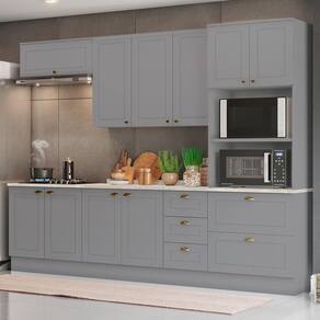 Com design contemporâneo, a Cozinha Americana embeleza qualquer ambiente. Seu conceito é inspirado nas clássicas cozinhas estilo americano, oferecendo uma decoração moderna e minimalista. Ela conta com puxadores em metal zamac, dobradiças 35 mm com amortecimento e espaçosos aéreos com 83cm de altura, proporcionando praticidade e funcionalidade. É um armário de cozinha 100% MDF com mais de 15 módulos, que possibilitam criar o projeto de cozinha dos seus sonhos.