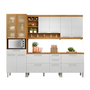 A Cozinha Burguesa tem design contemporâneo inspirado em cozinhas planejadas, ferragens inovadoras e tecnológicas e é muito prática. Disponível em módulos, permite composições variadas, conforme o gosto do consumidor. Projetada para proporcionar praticidade e funcionalidade no uso diário, produzida com matérias prima de alto nível proporcionando qualidade superior e durabilidade. Diferenciais únicos: • Puxadores de alumínio no padrão aço inox • Bonitas e robustas molduras • Dobradiça SlowMotion com fechamento anti-impacto • Corrediça telescópica abertura integral: robusta e com três estágios, esta corrediça é ideal para o uso diário, facilitando o acesso aos utensílios • Ergonômicos gavetões com laterais e traseiros altas para armazenagem de utensílios e mantimentos • Paneleiro com bonita porta de vidro reflecta