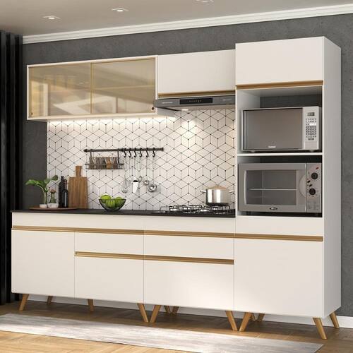 A Cozinha Completa 5 peças com Armário e Balcão MP3715 Veneza Multimóveis tem um excelente custo benefício e um amplo espaço interno. Produzida em MDP com acabamento acetinado (cerca de 20% de brilho), que garante maior durabilidade e resistência, possui corrediças metálicas (mais leveza no manuseio), pés retrô em polipropileno, que deixam o ambiente mais estiloso, puxadores em ABS e tampo em MDP 15mm com pintura de alta resistência. Os módulos são individuais e você pode montar da maneira que se adaptar melhor ao seu ambiente. O balcão possui tampo removível (compatível com pia de 120 cm). Para deixar sua cozinha mais bonita e completa possui vidro reflecta, compartimento especial para utensílios mais altos, balcão para cooktop, além de espaço para forno e microondas.