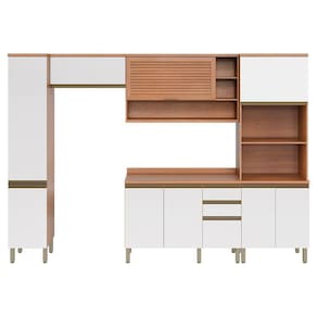 A Cozinha Completa Macadâmia possui diversas referências do móvel planejado – como a estética e funcionalidade – com a vantagem de ser mais acessível e já estar pronta para levar para casa. Oferece ainda a praticidade de ser montada da forma que você preferir! Essa configuração conta com cinco módulos muito funcionais, ótimo espaço interno para organização e armazenagem, e é toda composta por ferragens e acessórios de qualidade excelente: as portas são equipadas com dobradiças com caneco de 35mm e sistema de amortecimento slow motion – para garantir movimentos mais suaves na abertura e fechamento; já as basculantes possuem pistão a gás – um componente que garante sustentação e segurança na usabilidade. As gavetas contam com corrediças telescópicas – sinônimo de firmeza, deslizamento mais suave e abertura de extração total – e divisor de talheres. O Paneleiro Torre Quente é robusto e perfeito para manter os eletros ao alcance das mãos. Já o Paneleiro na versão mais compacta possui ótima capacidade interna para acomodação de itens variados. O Armário possui porta basculante ripada, no famoso estilo veneziano, e nichos para acomodar itens especiais. O Balcão conta ainda com uma gaveta de laterais e fundos super altos, proporcionando mais segurança na organização. A Cozinha Completa Macadâmia é garantia de qualidade e beleza para a sua casa. Acabamento da Prateleira: Finish Foil Escala de Brilho da Prateleira: Semi-Brilho Acabamento da Gaveta: Finish Foil Escala de Brilho da Gaveta: Semi-Brilho Acabamento da Porta: Finish Foil Escala de Brilho da Porta: Semi-Brilho Acabamento: Finish Foil Acabamento dos Pés: Polipropileno Acompanha Tampo: Sim Altura dos Pés: 17 cm Ambiente Principal: Cozinha Complexidade da Montagem: Média: pode ser montado por mais de uma pessoa e/ou necessite de maior conhecimento para montagem Cor: Freijó/Branco Cor do Produto: Freijó/Branco Cor Interna: Freijó Escala de Brilho: Semi-Brilho Gaveta com Chave: Não Itens Inclusos: 1 Armário, kit ferragens e manual de montagem Manual de Montagem e Instalação: https://cdn2.madeiramadeira.com.br/atributo/telasul/1307671-914425-01.pdf Material da Dobradiça/Corrediça da Porta: Aço Material da Gaveta: MDP Material da Porta: MDP Material da Prateleira: MDP Material do Tampo: MDP Material dos Pés: Polipropileno Medida de cada item (A x L x P): Paneleiro: 217 cm x 70 cm x 52 cm; Armário: 36 cm x 80 cm x 31 cm; Armário: 72,5 cm x 120 cm x 31 cm; Balcão: 92 cm x 120 cm x 52 cm; Paneleiro: 217 cm x 40 cm x 52 cm; Necessita Montagem: Sim O Balcão Acompanha Pia: Não Origem do Produto: Nacional Pés Reguláveis: Sim Peso: 171,9 kg Peso Máximo por Gaveta: 3 kg Peso Máximo por Prateleira: 12 Possui Pés: 13 Possui Portas: 09 Possui Prateleiras: 07 Possui recorte para Cooktop: Não Possui Rodízio: Não Recomendações de Uso, Manutenção e Limpeza: Na limpeza, utilizar pano macio levemente umedecido em água e sabão neutro. Após, secar para evitar mofo no produto.Nunca utilizar álcool ou produtos abrasivos e, principalmente, esponjas de aço ou qualquer material que arranhe a superfície.Evitar o armazenamento de substância ácidas (sal, vinagre, limão, cebola, etc) em contato direto com o móvel. Sapatas Niveladoras: Não Sistema de Montagem: Parafuso, cavilha, prego, Minifix Suporta Até (kg): 32,1 kg Tamanho Indicado da Pia: Não se aplica Tipo de Corrediça da Gaveta: Telescópica Tipo de Dobradiça da Porta: Soft close Tipo de Porta: Misto (Bater e Basculante) Tipo de Puxador da Gaveta: Embutido Tipo de Puxador da Porta: Embutido