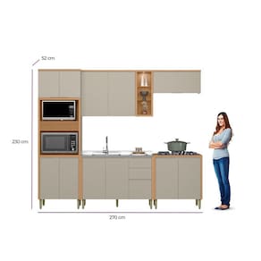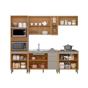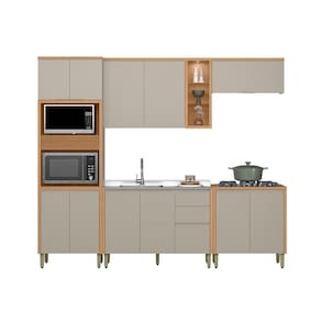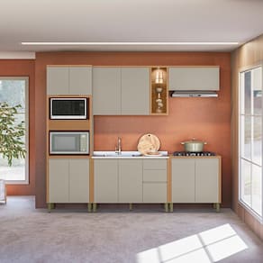 A Cozinha Allure, composta por 5 módulos combina sofisticação e funcionalidade. Fabricada 100% MDF, oferece excelente acabamento e durabilidade. Conta com dobradiças com sistema de amortecimento, puxadores embutidos, torre com detalhe canelado e aéreo com nichos e spot para iluminação. Balcão de 1,20m sem tampo para ser utilizado com pia. É a escolha ideal para deixar sua cozinha ainda mais charmosa e organizada. Acabamento da Prateleira: Pintura Texturizada UV Escala de Brilho da Prateleira: Fosco Acabamento da Gaveta: Pintura Texturizada UV Escala de Brilho da Gaveta: Fosco Acabamento da Porta: Pintura Texturizada UV Escala de Brilho da Porta: Fosco Acompanha Rodapé Decorativo: Não Acompanha Tampo: Não Altura dos Pés: 16,5 cm Altura Máxima dos Pés: 16.5000 Ambiente Principal: Cozinha Balcão Suporta Pia: Sim codigo_ean: 7900288191618 Complexidade da Montagem: Média: pode ser montado por mais de uma pessoa e/ou necessite de maior conhecimento para montagem Cor: Jequitibá/Gris Fosco Cor do Produto: Jequitibá/Gris Fosco Cor Interna: Jequitibá Escala de Brilho: Fosco Espessura do Material da Estrutura: 15 mm Gaveta com Chave: Não Itens Inclusos: 1 Cozinha Completa, Kit Ferragem e Manual de Montagem Linha ou Coleção: Allure Manual de Montagem e Instalação: https://product-hub-prd.madeiramadeira.com.br/924633494/documents/a6ef7d4c-e072-4c81-b46f-b169e74c0e3f3057050623117519966517764.pdf Marca: Linea Brasil Material da Corrediça: Metálica Material da Dobradiça/Corrediça da Porta: Metálica Material da Gaveta: MDF Material da Porta: MDF Material da Prateleira: MDF Material do Fundo: mdf Material dos Pés: Plástico Medida de cada item (A x L x P): Torre Quente: 230x70x52,balcao: 89x120x52,aereo: 78x120x33,balcao: 89x80x52,aereo: 39x80x33 modular: Sim Necessita Montagem: Sim O Balcão Acompanha Pia: Não Origem do Produto: Nacional Pés Reguláveis: Sim Peso: 166,77 kg Peso Máximo por Gaveta: 5 kg Peso Máximo por Prateleira: 5 kg Possui Pés: 13 Possui Portas: Sim Possui Prateleiras: Sim Possui recorte para Cooktop: Não Possui Rodízio: Não Possui Vidro: Sim Produto Montado: Sim Recomendações de Uso, Manutenção e Limpeza: Pano Seco Sapatas Niveladoras: Não Sistema de Montagem: Parafusos, Cavilhas e Minifix Tamanho Indicado da Pia: 120x52 Tamanho Indicado do Tampo: 1,20x0,52 Tipo de Corrediça da Gaveta: Metálica Telescópica Tipo de Dobradiça da Porta: Soft close Tipo de Dobradiça/Corrediça da Porta: Soft Close Tipo de Puxador da Gaveta: Embutido Tipo de Puxador da Porta: Embutido