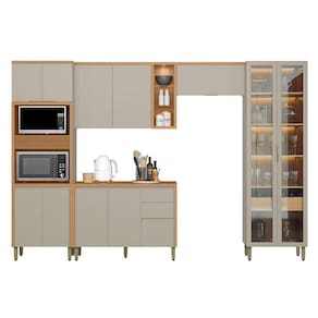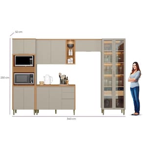 A Cozinha Allure, formada por 5 módulos, une elegância e praticidade em um só conjunto. Produzida totalmente em MDF, garante alta resistência e um acabamento impecável. Apresenta dobradiças com amortecimento, puxadores embutidos que valorizam o design, além de uma belíssima cristaleira com iluminação em LED e garrafeiro integrado. Conta ainda com torre com detalhe canelado e armário aéreo com nichos e spot de luz. Uma excelente opção para transformar sua cozinha em um ambiente sofisticado e bem organizado. Acabamento da Prateleira: Pintura Texturizada UV Escala de Brilho da Prateleira: Fosco Acabamento da Gaveta: Pintura Texturizada UV Escala de Brilho da Gaveta: Fosco Acabamento da Porta: Pintura Texturizada UV Escala de Brilho da Porta: Fosco Acompanha Rodapé Decorativo: Não Acompanha Tampo: Sim Altura dos Pés: 16,5 cm Altura Máxima dos Pés: 16.5000 Ambiente Principal: Cozinha Balcão Suporta Pia: Sim codigo_ean: 7900288191571 Complexidade da Montagem: Média: pode ser montado por mais de uma pessoa e/ou necessite de maior conhecimento para montagem Cor: Jequitibá/Gris Fosco Cor do Produto: Jequitibá/Gris Fosco Cor Interna: Jequitibá Escala de Brilho: Fosco Espessura do Material da Estrutura: 15 mm Espessura do Tampo: 30 mm Gaveta com Chave: Não Itens Inclusos: 1 Cozinha Completa, Kit Ferragem e Manual de Montagem Linha ou Coleção: Allure Manual de Montagem e Instalação: https://product-hub-prd.madeiramadeira.com.br/856179727/documents/7c8d0a48-dd09-4558-b933-fb4c08fa309f3057334623117520014679556.pdf Marca: Linea Brasil Material da Corrediça: Metálica Material da Dobradiça/Corrediça da Porta: Metálica Material da Gaveta: MDF Material da Porta: MDF Material da Prateleira: MDF Material do Fundo: mdf Material do Tampo: MDF Material dos Pés: Plástico Medida de cada item (A x L x P): Torre Quente: 230x70x52,balcao: 89x120x52,aereo: 78x120x33,aereo: 39x80x33,cristaleira: 230x70x52 modular: Sim Necessita Montagem: Sim O Balcão Acompanha Pia: Não Origem do Produto: Nacional Pés Reguláveis: Sim Peso: 211,57 kg Peso Máximo por Gaveta: 5 kg Peso Máximo por Prateleira: 5 kg Possui Pés: 13 Possui Portas: Sim Possui Prateleiras: Sim Possui recorte para Cooktop: Não Possui Rodízio: Não Possui Vidro: Sim Produto Montado: Sim Recomendações de Uso, Manutenção e Limpeza: Pano Seco Sapatas Niveladoras: Não Sistema de Montagem: Parafusos, Cavilhas e Minifix Tamanho Indicado da Pia: 120x52 Tipo de Corrediça da Gaveta: Metálica Telescópica Tipo de Dobradiça da Porta: Soft close Tipo de Dobradiça/Corrediça da Porta: Soft Close Tipo de Puxador da Gaveta: Embutido Tipo de Puxador da Porta: Embutido