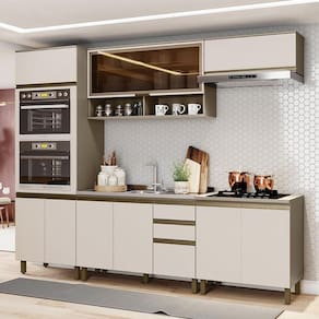 Cozinha Completa 5 Peças Connect com Aéreo Basculante Vidro - Móveis Henn