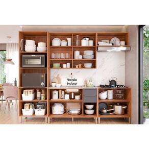 Cozinha Completa 5 Peças Divina 2 Aéreos 2 Balcões 1 Torre Quente C5p187 Freijó Titanium - Cinza