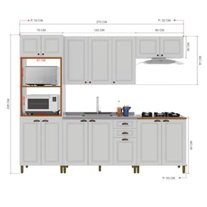 Seu design moderno e acabamento branco trazem leveza e elegância à cozinha. Fabricada em MDP com pintura UV, é resistente e fácil de manter. Os puxadores e dobradiças metálicas garantem durabilidade e um toque contemporâneo ao conjunto.