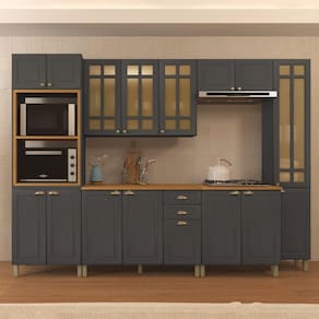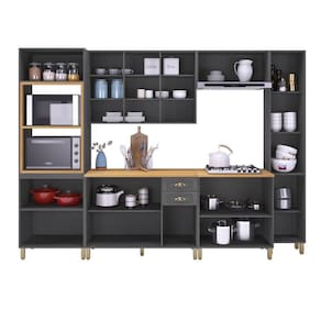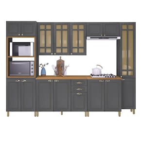 A cozinha Paris da Indekes, possuí sua estrutura em chapas de MDP 15mm e portas/gavetas em MDF 15mm, o que garante sua qualidade e durabilidade. Possuí puxadores em metal, que são muito resistentes. Com design inovador e inspirado no estilo americano, a cozinha foi feita para você que está procurando aliar a funcionalidade com a elegância, com um móvel que exalta qualquer ambiente. Acabamento da Prateleira: Pintura Escala de Brilho da Prateleira: Fosco Acabamento da Gaveta: Pintura Escala de Brilho da Gaveta: Fosco Material do Puxador da Gaveta: Metal Acabamento da Porta: Pintura Escala de Brilho da Porta: Fosco Material do Puxador da Porta: Metal Acabamento: Pintura UV Acompanha Tampo: Sim Altura dos Pés: 14 Ambiente Principal: Cozinha Complexidade da Montagem: Alta: deve ser montado por um montador especializado Cor: Cinza Cor do Produto: Cinza Cor Interna: Cinza Escala de Brilho: Fosco Gaveta com Chave: Não Itens Inclusos: 1 Torre Quente 2 Fornos 70 Cm, 1 Armário 120 Cm, 1 Balcão De 120 Cm Com Tampo, 1 Armário de 80 Cm, 1 Balcão de 80 Cm, 1 Paneleiro Simples 40 Cm, Kit Ferragens e Manual de Montagem Linha ou Coleção: Paris Manual de Montagem e Instalação: https://cdn2.madeiramadeira.com.br/atributo/moveis-indekes/1279915-6171-104-manual.pdf Material da Dobradiça/Corrediça da Porta: Metálica Material da Gaveta: MDF Material da Porta: MDF Material da Prateleira: MDP Material do Tampo: MDF Material dos Pés: Plástico Medida de cada item (A x L x P): Torre Quente: 226x70x51,5cm | Armário de 120 Cm: 81x120x32cm | Balcão 120 Cm Com Tampo: 93x120x53cm | Armário de 80 Cm: 36x80x32cm | Balcão De 80 Cm: 93x80x53cm | Paneleiro Simples: 226x40x32cm Montagem Flex: Não Necessita Montagem: Sim O Balcão Acompanha Pia: Não Origem do Produto: Nacional Pés Reguláveis: Sim Peso: 201.4 Peso Máximo por Gaveta: 3 Peso Máximo por Prateleira: 5 Possui Pés: 17 Possui Portas: 16 Possui Prateleiras: 09 Possui recorte para Cooktop: Não Possui Rodízio: Não Recomendações de Uso, Manutenção e Limpeza: Não limpar com álcool ou qualquer outro produto quimico. Utilize somente pano seco ou levemente umedecido. Sapatas Niveladoras: Não Sistema de Montagem: Cavilhas, Parafusos, Minifix Suporta Até (kg): 30 Tamanho Indicado da Pia: 120x53cm Tipo de Corrediça da Gaveta: Telescópica Tipo de Dobradiça da Porta: Soft close Tipo de Porta: Bater Tipo de Puxador da Gaveta: Externo Tipo de Puxador da Porta: Externo