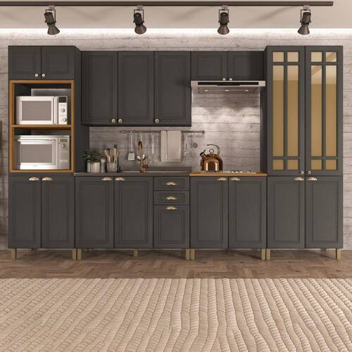 Cozinha Completa 6 Peças 18 Portas 2 Gavetas Paris Indekes Cinza