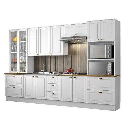 Com design contemporâneo, a Cozinha Americana embeleza qualquer ambiente. Seu conceito é inspirado nas clássicas cozinhas estilo americano, oferecendo uma decoração moderna e minimalista. Ela conta com puxadores em metal zamac, dobradiças 35mm com amortecimento e espaçosos aéreos com 83cm de altura, proporcionando praticidade e funcionalidade. É um armário de cozinha 100% MDF com mais de 15 módulos, que possibilitam criar o projeto de cozinha dos seus sonhos.