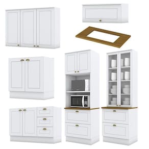 Cozinha Completa 6 Peças Americana com Torre Quente 2 Fornos Tampo Nature - Móveis Henn