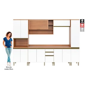 A Cozinha Completa Macadâmia possui diversas referências do móvel planejado – como a estética e funcionalidade – mas tem vantagem de ser bem mais acessível e já estar pronta, além de permitir a montagem de acordo com o seu espaço. É formada por seis módulos muito funcionais e composta por ferragens e acessórios de excelente qualidade: as portas são equipadas com dobradiças com caneco de 35mm e sistema de amortecimento slow motion – para garantir movimentos mais suaves na abertura e fechamento; já as basculantes possuem pistão a gás – um componente que garante sustentação e segurança na usabilidade. As gavetas possuem corrediças telescópicas – sinônimo de firmeza, deslizamento mais suave e abertura de extração total – e divisor de talheres. O Paneleiro é robusto e perfeito para manter micro ou forno ao alcance das mãos. Já o Paneleiro na versão mais compacta possui ótima capacidade interna para acomodação de itens variados. O Armário possui porta basculante ripada, no famoso estilo veneziano, e nichos para acomodar itens especiais. O Balcão – item essencial na cozinha - conta com uma gaveta de laterais e fundos super altos, proporcionando mais segurança na organização. Completa, bonita, resistente e pronta para levar para casa. Acabamento da Prateleira: Finish Foil Escala de Brilho da Prateleira: Semi-Brilho Acabamento da Gaveta: Finish Foil Escala de Brilho da Gaveta: Semi-Brilho Acabamento da Porta: Finish Foil Escala de Brilho da Porta: Semi-Brilho Acabamento: Finish Foil Acabamento dos Pés: Polipropileno Acompanha Tampo: Sim Altura dos Pés: 17 cm Ambiente Principal: Cozinha Complexidade da Montagem: Média: pode ser montado por mais de uma pessoa e/ou necessite de maior conhecimento para montagem Cor: Freijó/Branco Cor do Produto: Freijó/Branco Cor Interna: Freijó Escala de Brilho: Semi-Brilho Gaveta com Chave: Não Itens Inclusos: Manual de Montagem Manual de Montagem e Instalação: https://cdn2.madeiramadeira.com.br/atributo/telasul/1307963-914431-01.pdf Material da Dobradiça/Corrediça da Porta: Aço Material da Gaveta: MDP Material da Porta: MDP Material da Prateleira: MDP Material do Tampo: MDP Material dos Pés: Polipropileno Medida de cada item (A x L x P): Paneleiro: 217 cm x 40 cm x 52 cm; Armário: 36 cm x 80 cm x 31 cm; Armário: 72,5 cm x 120 cm x 31 cm; Balcão: 92 cm x 80 cm x 52 cm; Balcão: 92 cm x 120 cm x 52 cm; Paneleiro: 217 cm x 70 cm x 52 cm; Necessita Montagem: Sim O Balcão Acompanha Pia: Não Origem do Produto: Nacional Pés Reguláveis: Sim Peso: 165,3 kg Peso Máximo por Gaveta: 3 kg Peso Máximo por Prateleira: 12 Possui Pés: 17 Possui Portas: 12 Possui Prateleiras: 11 Possui recorte para Cooktop: Não Possui Rodízio: Não Recomendações de Uso, Manutenção e Limpeza: Na limpeza, utilizar pano macio levemente umedecido em água e sabão neutro. Após, secar para evitar mofo no produto.Nunca utilizar álcool ou produtos abrasivos e, principalmente, esponjas de aço ou qualquer material que arranhe a superfície.Evitar o armazenamento de substância ácidas (sal, vinagre, limão, cebola, etc) em contato direto com o móvel. Sapatas Niveladoras: Não Sistema de Montagem: Parafuso, cavilha, prego, Minifix Suporta Até (kg): 38,9 kg Tipo de Corrediça da Gaveta: Telescópica Tipo de Dobradiça da Porta: Soft close Tipo de Porta: Misto (Bater e Basculante) Tipo de Puxador da Gaveta: Embutido Tipo de Puxador da Porta: Embutido