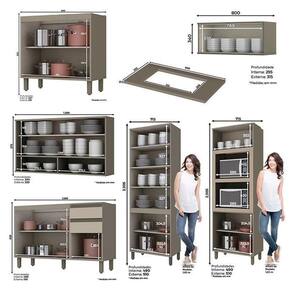 Cozinha Completa 6 Peças Connect Duna/cristal Com Torre Quente E Cristaleira - Móveis Henn Duna/cristal