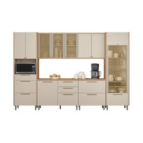 A Cozinha Atena é composta por 6 módulos que combinam perfeitamente design moderno e elegância. Produzida em 100% MDF, oferece alta durabilidade e um acabamento de qualidade superior. O projeto conta com dobradiças com sistema de amortecimento, além de um aéreo de 1,20m com porta de vidro reflecta e detalhe canelado, que conferem um toque sofisticado ao ambiente. O conjunto inclui uma cristaleira belíssima, equipada com garrafeiro e iluminação em LED, além de uma torre funcional, ideal para quem precisa de mais espaço para armazenamento. Os módulos inferiores contam com gavetas amplas, garantindo praticidade e organização no dia a dia. Uma escolha perfeita para quem busca uma cozinha funcional, charmosa e cheia de estilo.