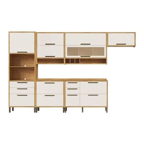 Cozinha completa 100% MDF, pensada para ambientes maiores, oferecendo o máximo de funcionalidade. Composta por 6 peças com divisões projetadas para uma perfeita organização. Possui 1 Paneleiro com suporte para eletrodomésticos como forno e microondas, 2 portas e duas gavetas, 3 armários aéreos, sendo 1 de 120cm e 2 de 80cm com total de 5 portas basculantes e 2 Balcões, de 80cm com 2 portas e nicho e outro de 120cm com 2 portas basculantes e 3 gavetas, essa proposta pode ser montada de forma individual se adequando da melhor maneira ao seu espaço. Os balcões acompanham tampo de 25mm. Possui vidro reflecta em 1 das portas superiores, que ajuda na luminosidade e traz ainda mais beleza.