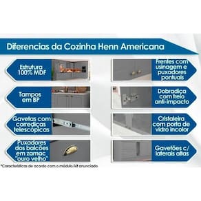 Cozinha Completa Americana 7 Peças (2Aéreos+2Balcões+1Paneleiro+2Complementos) CZ144 Cinza - Henn