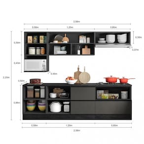 Cozinha Completa 7 Peças com Balcão Etna Poliman - Grafite